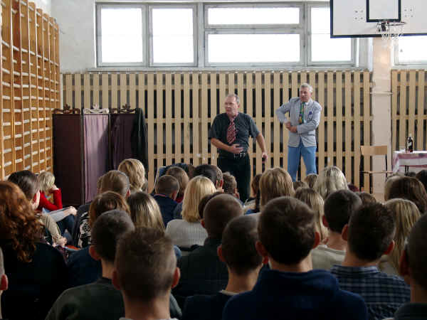 prochowcu, z kapeluszem na głowie. Słysząc rozmowę uczennic pyta na