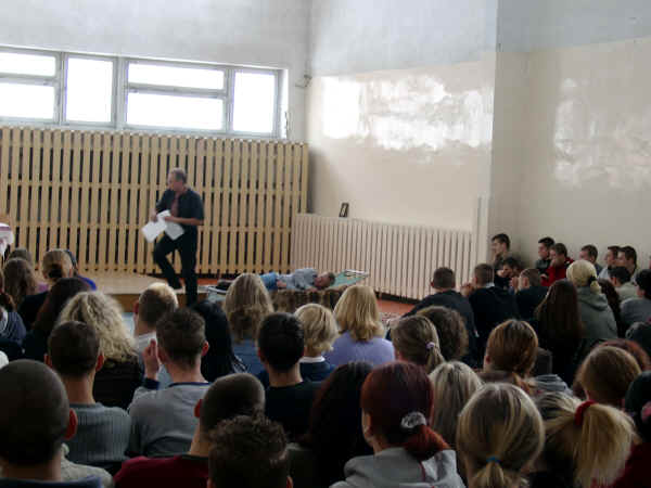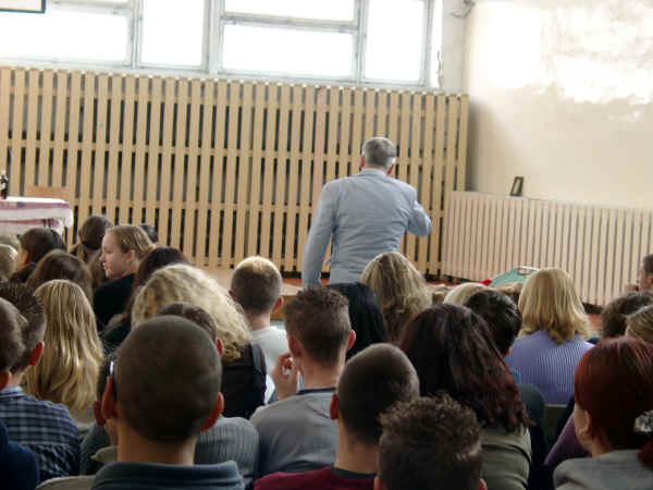 | Po korytarzu przed salą, w której ma odbyć
